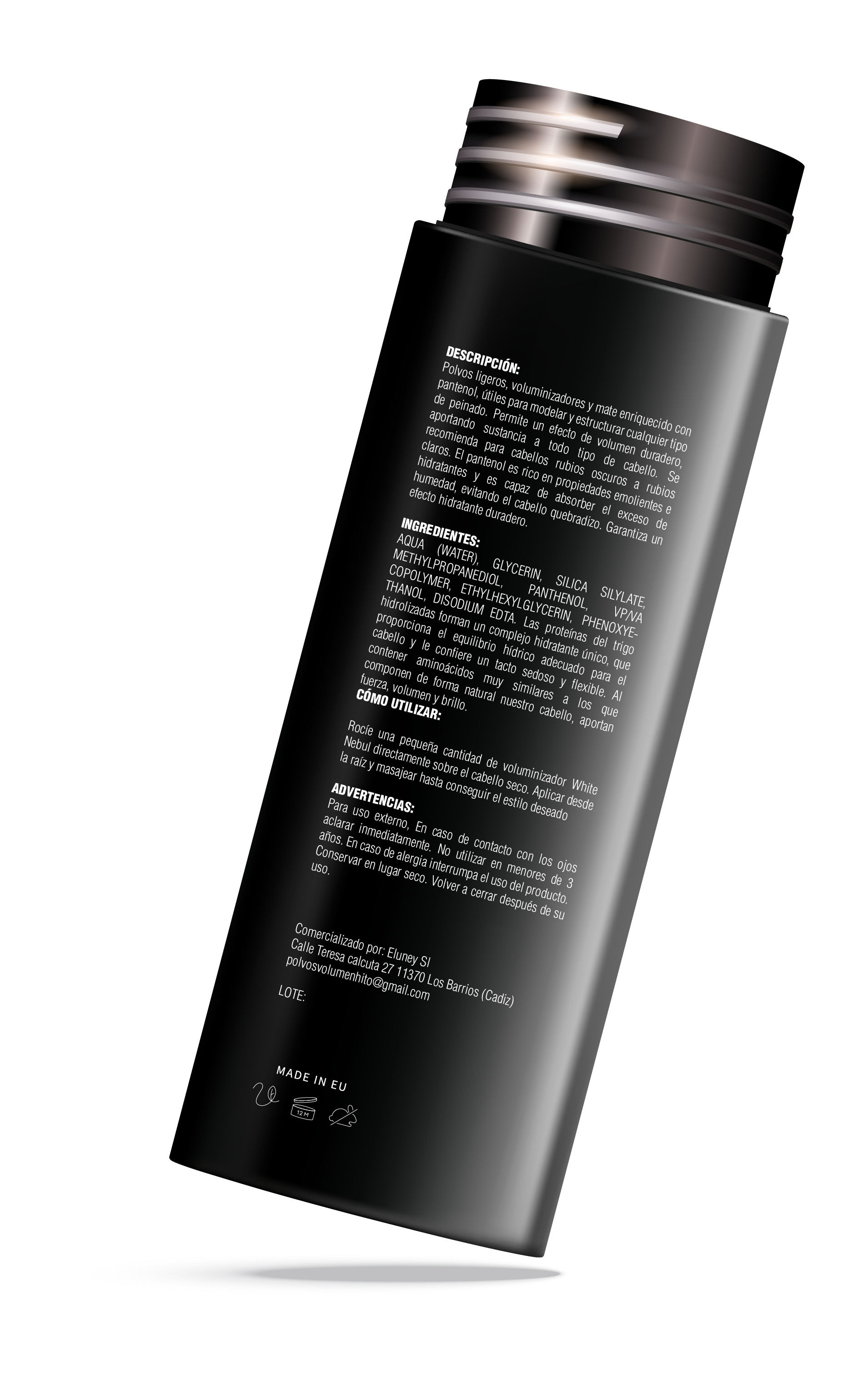 Rocíe una pequeña cantidad de voluminizador White Nebul directamente sobre el cabello seco. Aplicar desde la raíz y masajear hasta conseguir el estilo deseado.